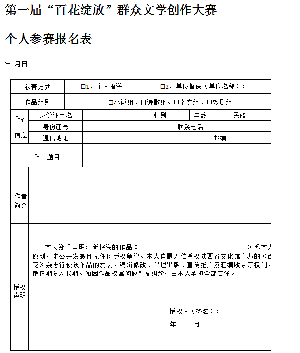 所有投稿者均须填写个人参赛报名表(附件1),作者手签与参赛作品一同以附件形式发送至邮箱17730697352@163.com。