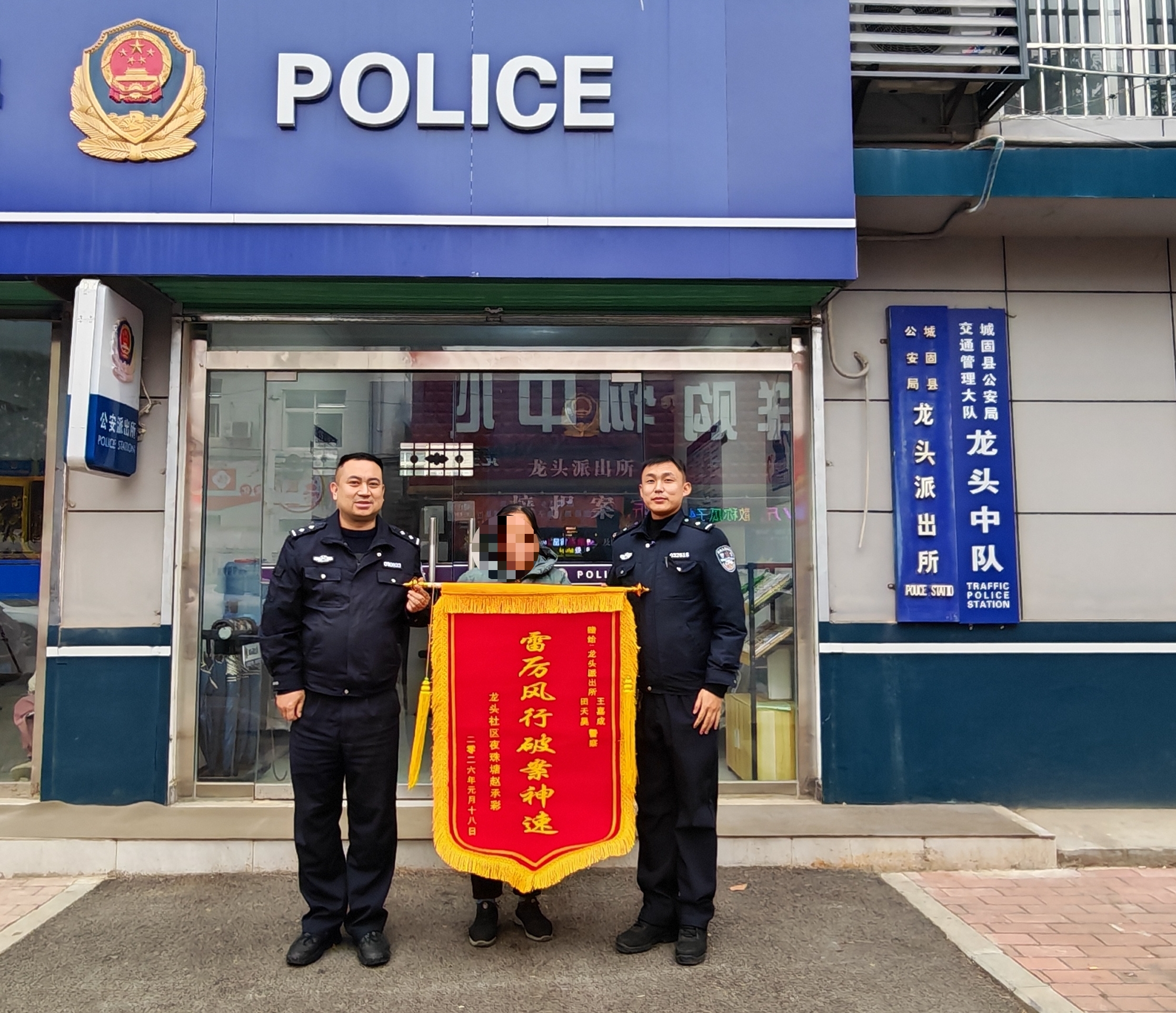 1月19日, 赵女士将一面印有“雷厉风行 破案神速 ”字样的锦旗送到城固县公安局龙头派出所,对一周前前民警帮其迅速找回遗失物品的暖心行为表示由衷感谢。