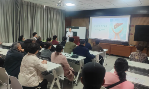 本次义诊活动以健康科普讲座拉开序幕,中医科主任张学虹、感染科主任鱼宁彬先后为现场居民讲解春季养肝、常见肝病防治知识。我院党委书记、消化内科专家刘峰,结合老年群体健康特点,讲解了肝脏保护的重要性,介绍了医院在肝病诊疗、健康科普、服务基层等方面开展的工作,并表示医院将继续把公益义诊和健康科普办实办好,让医疗服务更贴近群众、更方便群众。