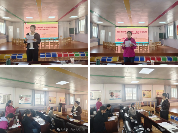 为充分发挥渭南市专家名师示范引领作用,扎实推进城乡教师学习共同体名师引领行动落地见效,4月22日,蒲城县第七幼儿园园长曹敏、保教主任张楠走进白水县幼儿园开展“城乡教师学习共同体·名师引领行动”线下教学诊断专项活动。