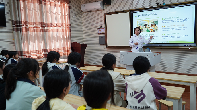 在校园春季传染病防控宣讲环节,宣讲专家从春季传染病高发的原因、常见类型、预防措施以及患病后的指导建议四个方面进行了系统讲解。专家指出,春季气温回暖、万物复苏,但也是各种病原体活跃、传染病易发高发的季节。学校作为人员密集场所,传染病防控工作尤为重要,它不仅关系到每一位同学的身体健康,更是守护校园安全、维护正常教学秩序的重要防线。宣讲中,专家呼吁同学们增强自我防护意识,养成勤洗手、多通风、科学佩戴口罩、合理膳食、加强锻炼等良好卫生习惯,做到“早发现、早报告、早隔离、早治疗”,共同筑牢校园健康屏障。
