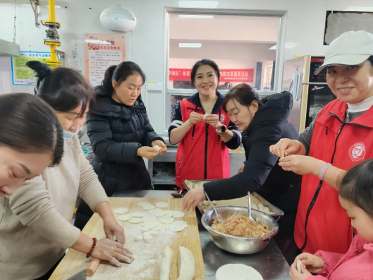 与此同时,包饺子区域同样欢声笑语不断。擀皮、包馅、捏褶,志愿者们动作娴熟、配合默契,一个个饱满的饺子承载着团圆与关爱,在谈笑间渐渐摆满托盘。店塔村互助幸福院的张阿姨一边捏着饺子花边,一边感慨:“冬至能和这么多孩子一起唱歌、包饺子,心里比刚出锅的饺子还暖!”热气腾腾的饺子上桌后,大家围坐在一起,边吃边聊,其乐融融,温馨的气息弥漫在幸福院的每一个角落。