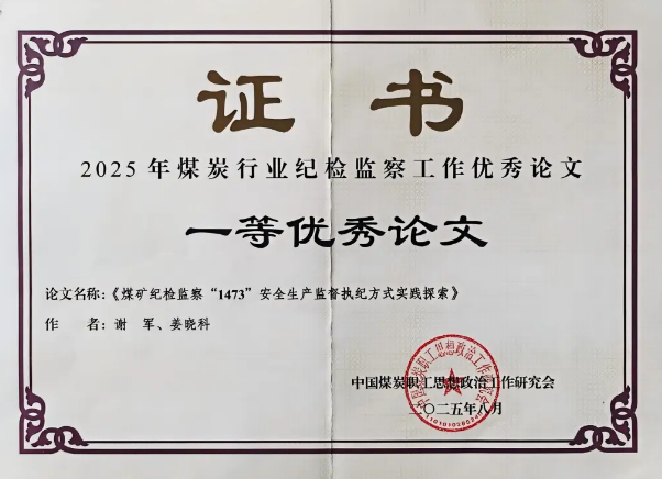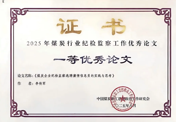 近日,中煤政研会发布了《2025年度纪检监察工作优秀研究成果及课题研究活动优秀组织单位的通知》,陕煤蒲白建庄矿业公司在此次活动中有7篇论文获奖,其中2篇论文荣获一等奖;1篇论文荣获二等奖;4篇论文荣获三等奖。